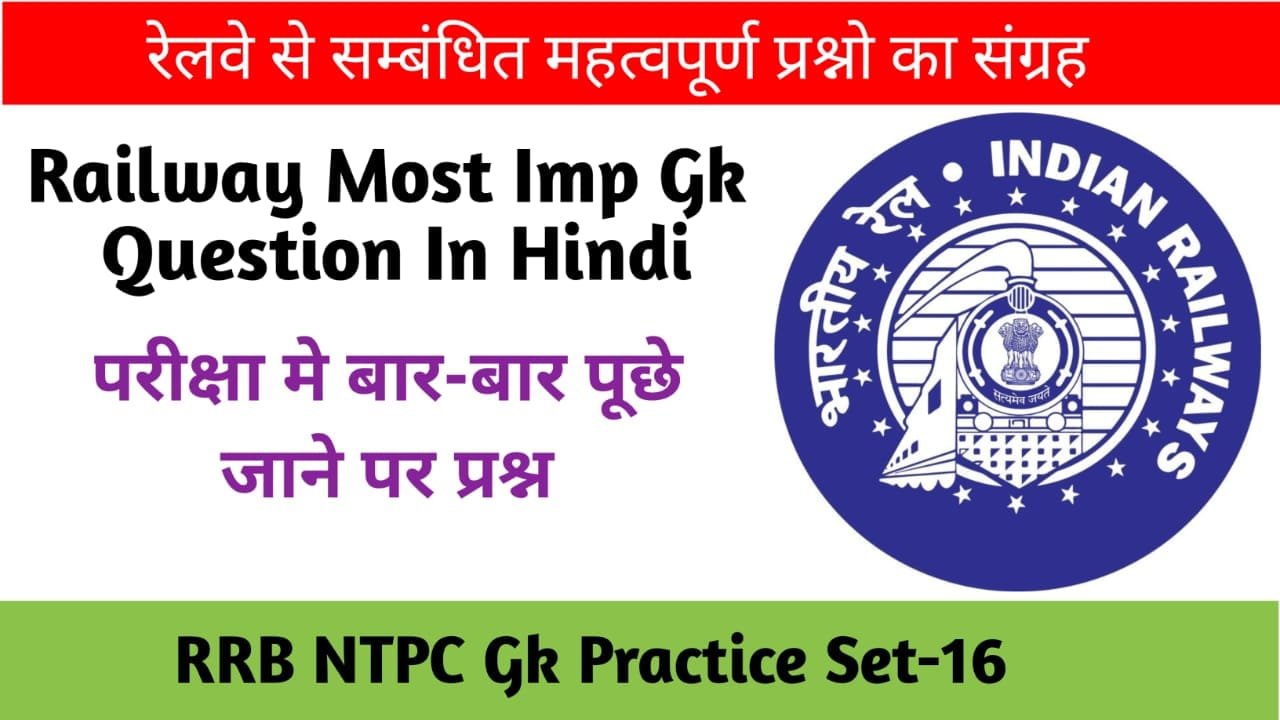 RRB NTPC Gk Practice Set-16:भारतीय रेलवे ने हाल ही में रेलवे एनटीपीसी का नोटिफिकेशन जारी कर दिया, है जिसके अंतर्गत रेलवे ने विभिन्न पदों के लिए 11558 पदों पर नोटिफिकेशन निकला है जिनमे ग्रेजुएट पदों की संख्या 8113 है और 12th के लिए 3445 पदों पर आवेदन लिए जायेगे।