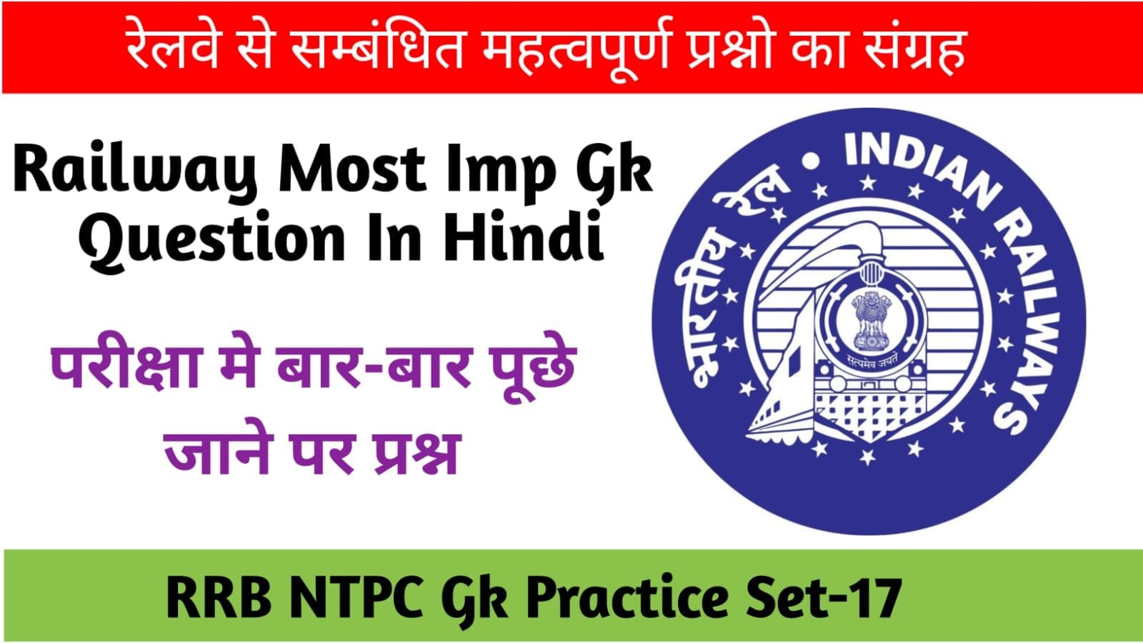RRB NTPC Gk Practice Set-17:भारतीय रेलवे ने हाल ही में रेलवे एनटीपीसी का नोटिफिकेशन जारी कर दिया, है जिसके अंतर्गत रेलवे ने विभिन्न पदों के लिए 11558 पदों पर नोटिफिकेशन निकला है जिनमे ग्रेजुएट पदों की संख्या 8113 है और 12th के लिए 3445 पदों पर आवेदन लिए जायेगे।