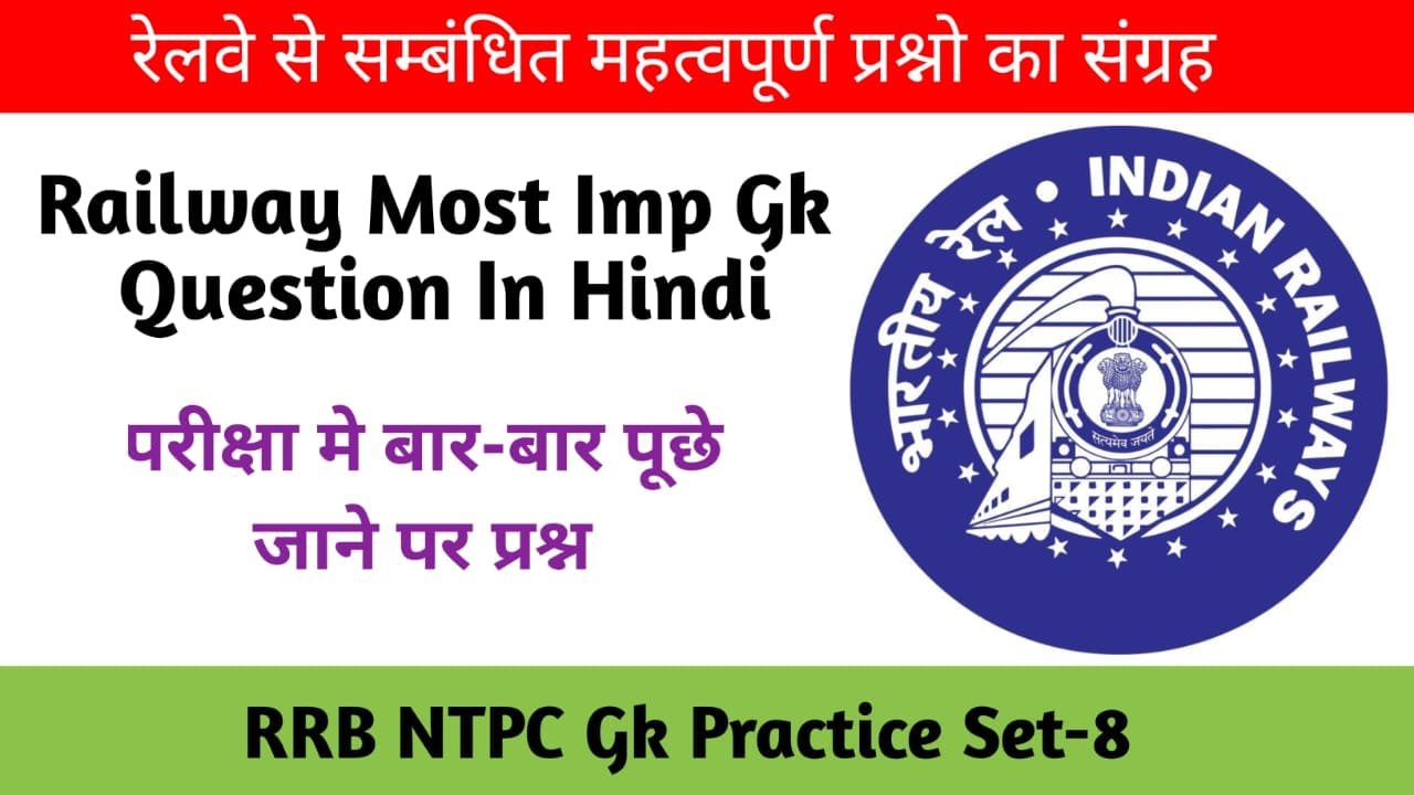 RRB NTPC Gk Practice Set-8:भारतीय रेलवे ने हाल ही में रेलवे एनटीपीसी का नोटिफिकेशन जारी कर दिया, है जिसके अंतर्गत रेलवे ने विभिन्न पदों के लिए 11558 पदों पर नोटिफिकेशन निकला है जिनमे ग्रेजुएट पदों की संख्या 8113 है और 12th के लिए 3445 पदों पर आवेदन लिए जायेगे।